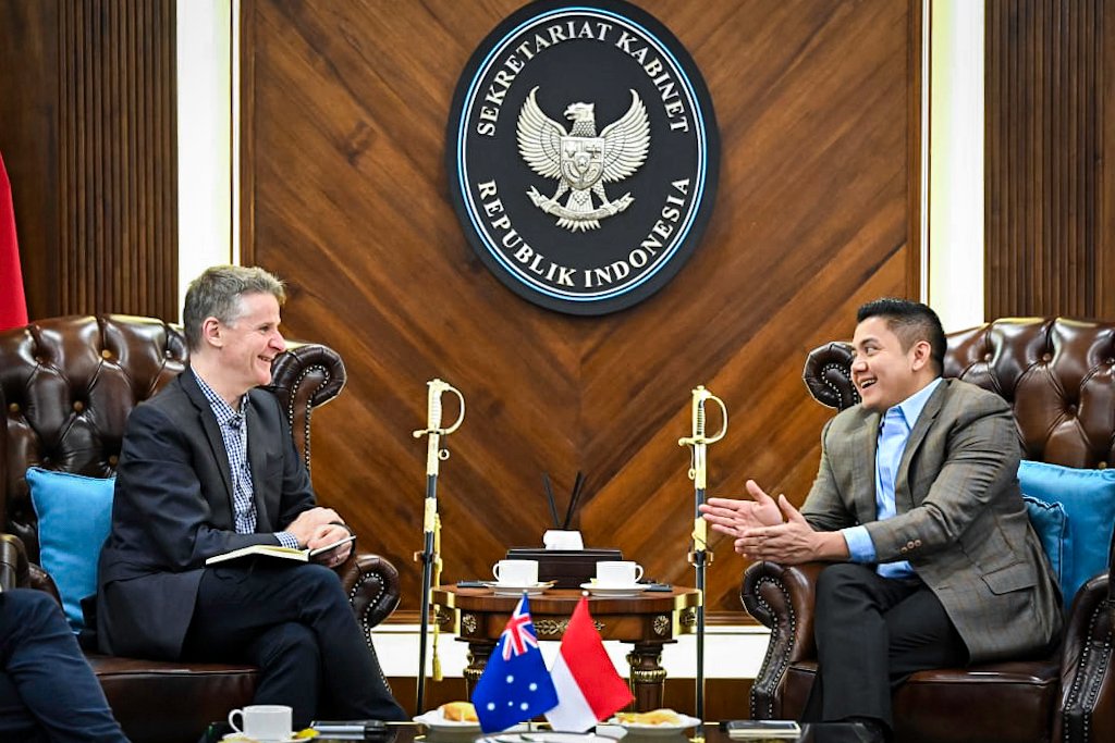 Sekretaris Kabinet Teddy Indra Wijaya bertemu dengan Duta Besar Australia untuk Republik Indonesia, Roderick Bruce Brazier, di Gedung Sekretariat Kabinet, Jakarta, pada Senin, 12 Mei 2025, guna membahas rencana kunjungan resmi Perdana Menteri (PM) Australia, Anthony Albanese. (Foto: BPMI Setpres)