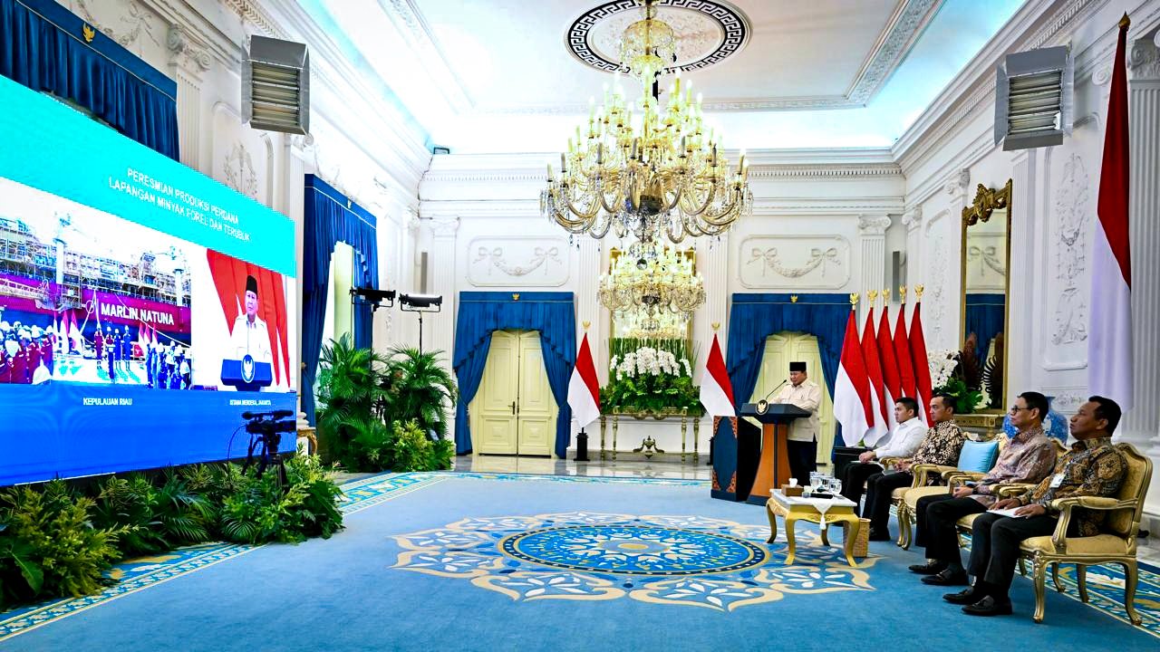 Presiden Prabowo Subianto meresmikan produksi perdana Lapangan Minyak Forel dan Terubuk yang berlokasi di Kepulauan Natuna, Provinsi Kepulauan Riau, pada Jumat, 16 Mei 2025. (Foto: BPMI Setpres)