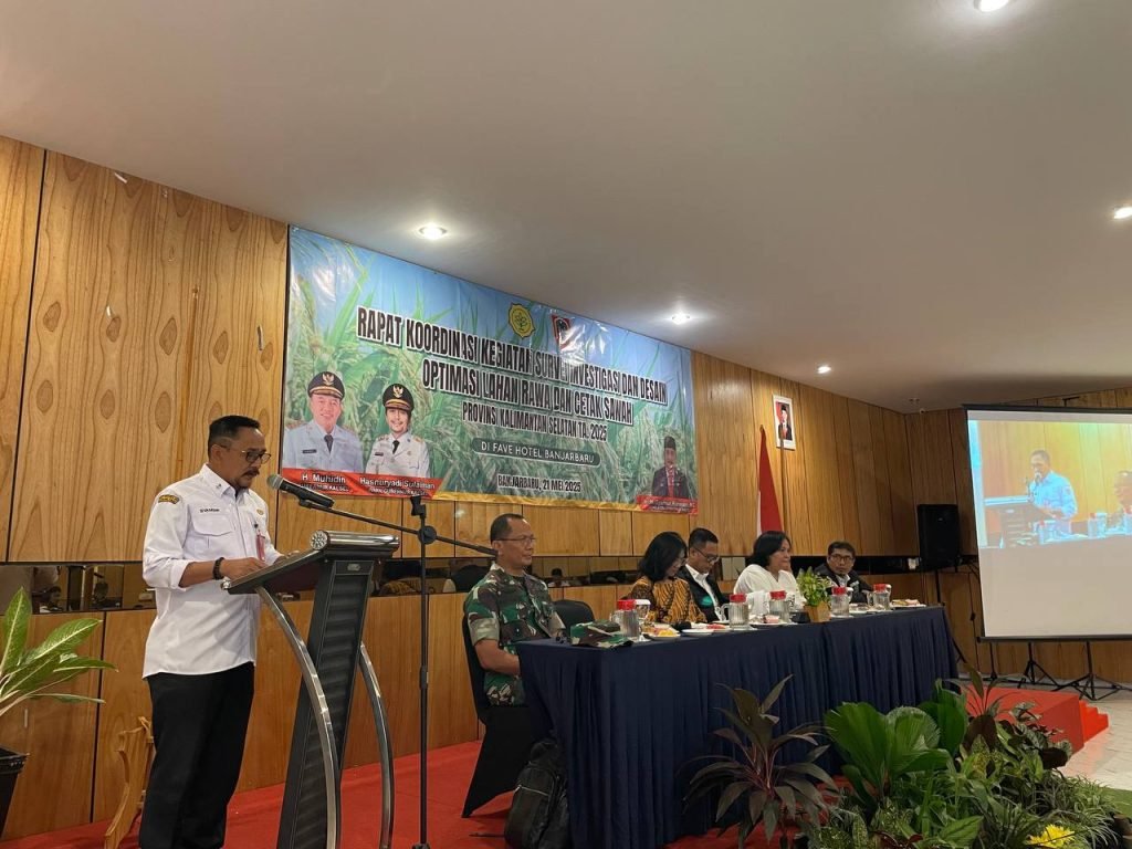Dalam upaya mendukung ketahanan pangan nasional, Dinas Pertanian dan Ketahanan Pangan (DPKP) Provinsi Kalimantan Selatan menggelar Rapat Koordinasi Kegiatan Survei Investigasi dan Desain (SID) Optimalisasi Lahan Rawa dan Cetak Sawah Tahun 2025, di Banjarbaru, Selasa (21/5/2025).