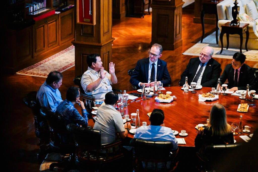 Presiden Prabowo Subianto menerima Utusan Khusus Perdana Menteri Inggris Urusan Pendidikan Prof. Sir Steve Smith dan Duta Besar Inggris untuk Indonesia Dominic Jermey di kediamannya di Hambalang, Bogor, Provinsi Jawa Barat, pada Jumat, 30 Mei 2025. (Foto: BPMI Setpres)