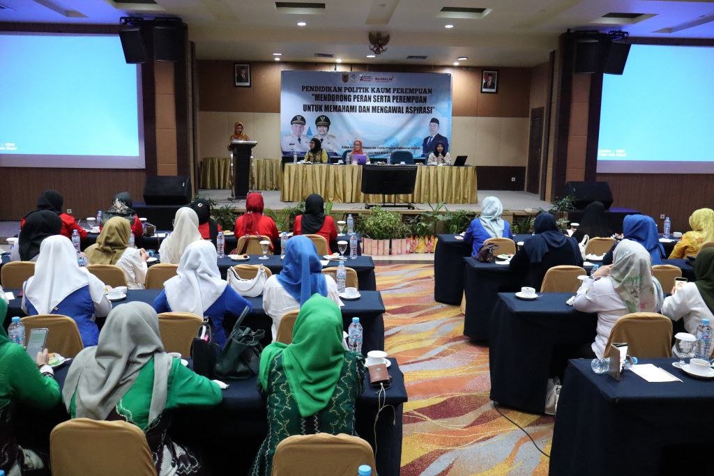 Kepala Bakesbangpol Kalsel, Heriansyah yang diwakili oleh Sekretaris, Sri Rahmawati menyebutkan, pendidikan politik kali ini mengangkat tema “Mendorong Peran Serta Perempuan untuk Memahami dan Mengawal Aspirasi”, diikuti oleh ratusan peserta dari perwakilan seluruh partai politik, atau Kaukus Perempuan Politik Indonesia (KPPI) Kalsel.