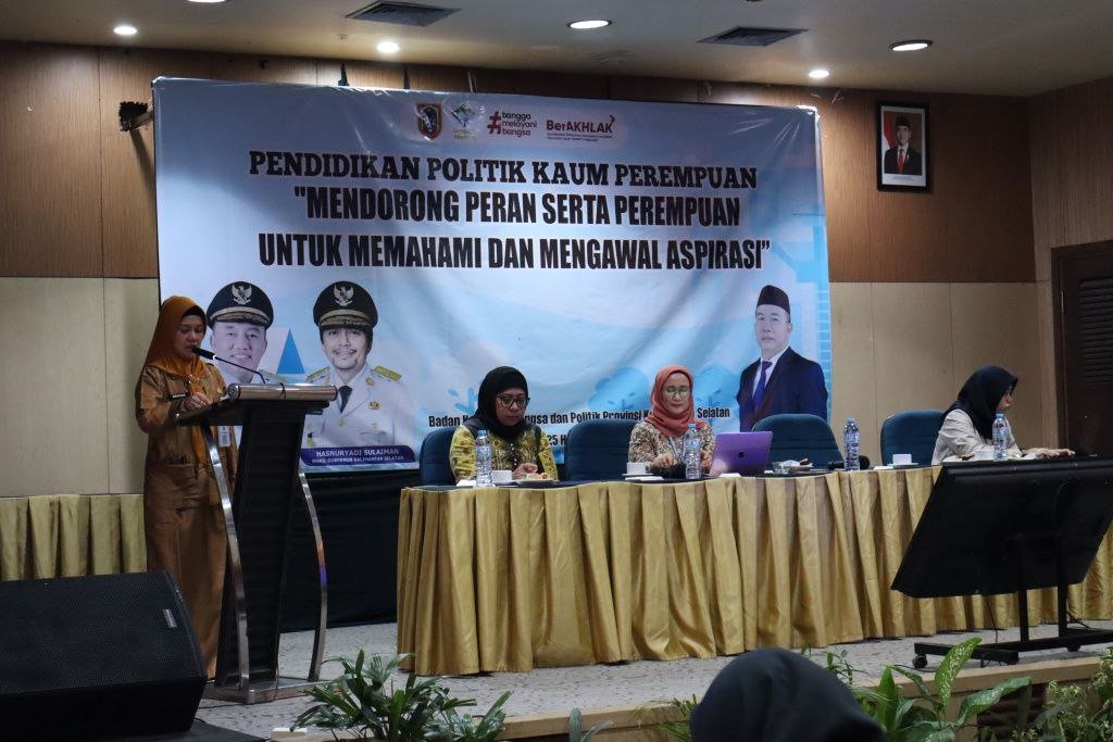 Pemerintah Provinsi Kalimantan Selatan melalui Badan Kesatuan Bangsa dan Politik (Kesbangpol Kalsel) memperkuat pemahaman perempuan Banua terhadap hak-hak di dunia politik melalui kegiatan Peningkatan Pendidikan Politik Kaum Perempuan di salah satu hotel di Banjarmasin, Senin (16/6/2025).