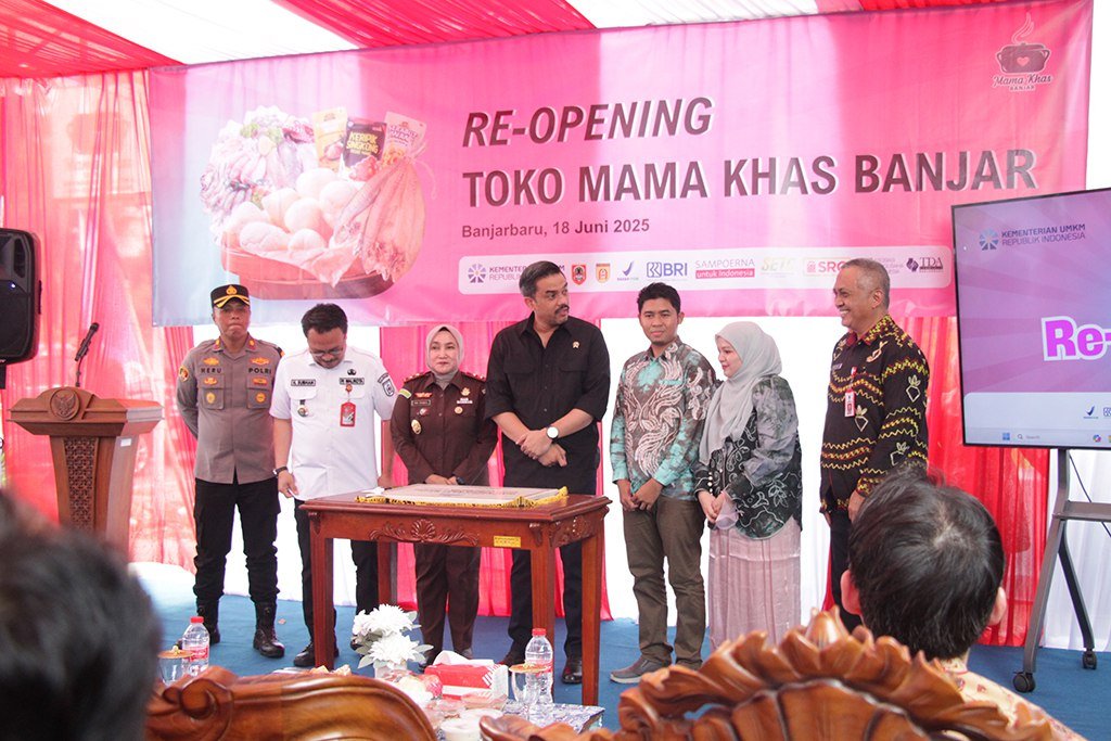 Menteri Usaha Mikro, Kecil, dan Menengah (UMKM) Republik Indonesia, Maman Abdurrahman, menghadiri acara re-opening Toko Mama Khas Banjar di Kota Banjarbaru, Rabu (18/6/2025).