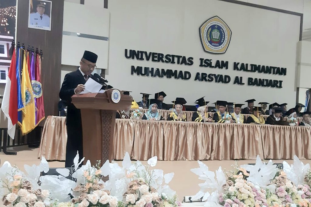 Gubernur Kalimantan Selatan, Muhidin melalui Staf Ahli Bidang Pemerintahan, Hukum, dan Politik, Adi Santoso, menyampaikan selamat dan aprresiasi kepada lulusan pada Wisuda Sarjana ke-49 dan Pascasarjana ke-22 Universitas Islam Kalimantan Muhammad Arsyad Al-Banjari (UNISKA), di aula Kampus Handil Bakti.