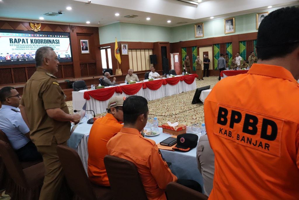 Gubernur Kalimantan Selatan (Kalsel), Muhidin memimpin langsung Rapat Koordinasi Kesiapsiagaan Menghadapi Bencana Kebakaran Hutan dan Lahan (Karhutla) Provinsi Kalimantan Selatan, yang digelar di Gedung Idham Chalid, Banjarbaru, Senin (4/8/2025).