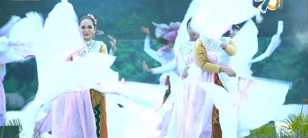 Kepala Dinas Pendidikan dan Kebudayaan Provinsi Kalimantan Selatan, Galuh Tantri Narindra mengapresiasi penampilan para penari Universitas PGRI Kalimantan (UPK) saat membawakam tarian “Nafas Bumi Banua” pada puncak Peringatan Hari Jadi Provinsi Kalimantan Selatan ke-75 di Kawasan Perkantoran Setdaprov Kalsel di Banjarbaru, Kamis (14/8/2025).