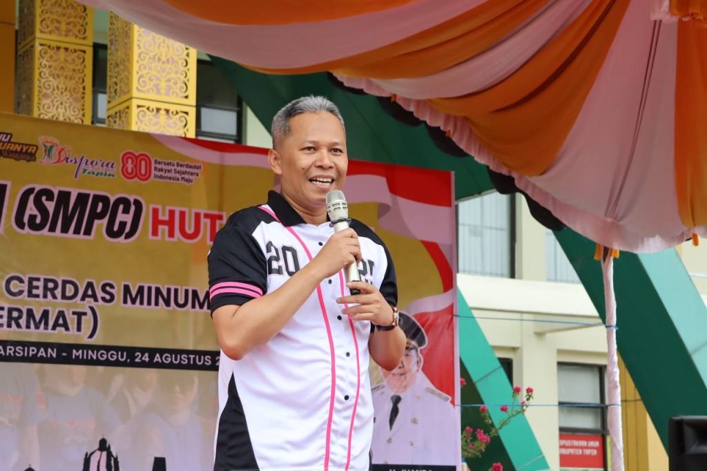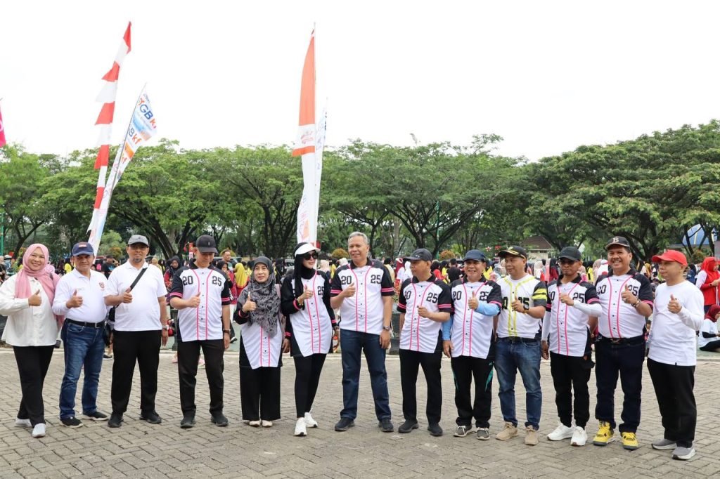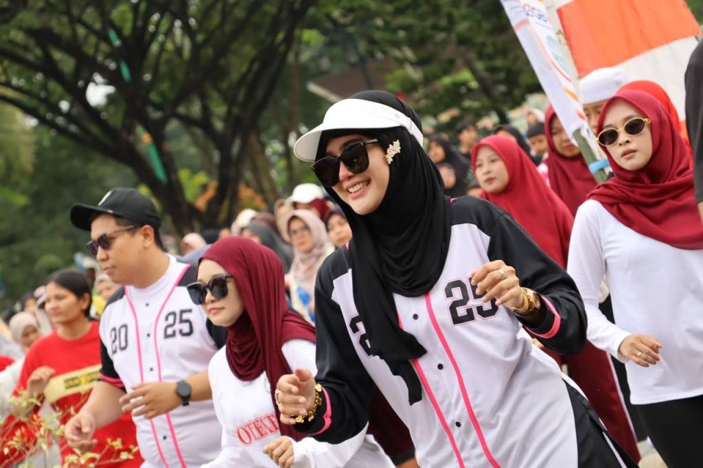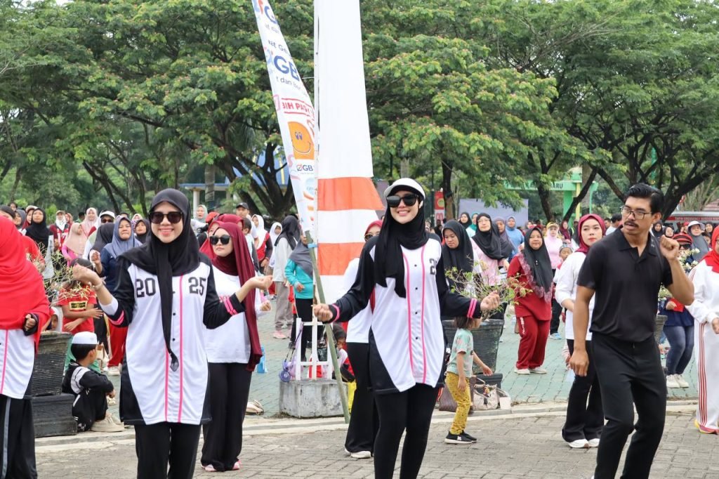 Ribuan masyarakat Kabupaten Tapin tumpah ruah di Halaman Perpustakaan Umum setempat untuk mengikuti kegiatan Senam Minggu Pagi Ceria (SMPC) dalam rangka peringatan HUT ke-80 RI yang dirangkai dengan kampanye Gerakan Masyarakat Cerdas Minum Obat (Gema Cermat), Minggu (24/8/2025) pagi.