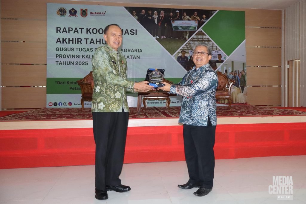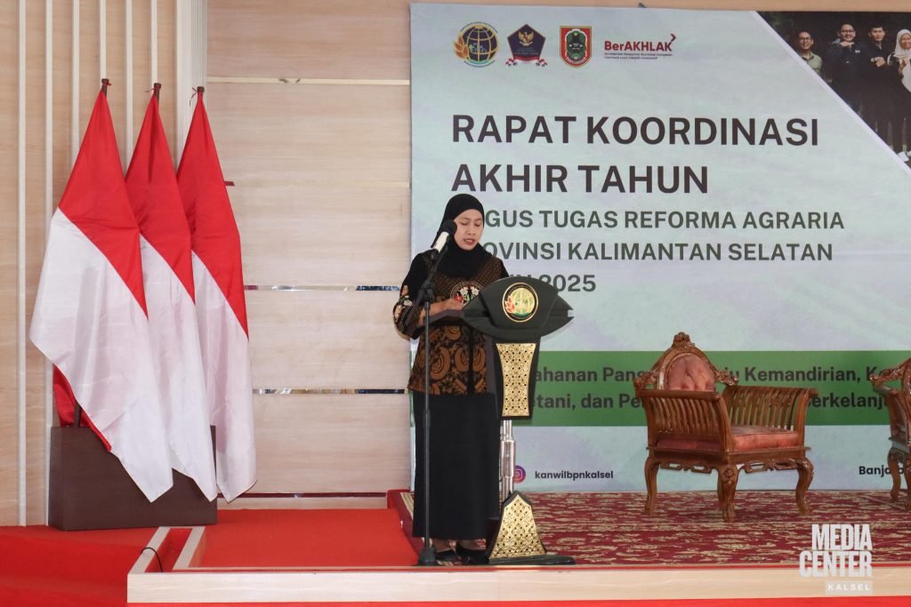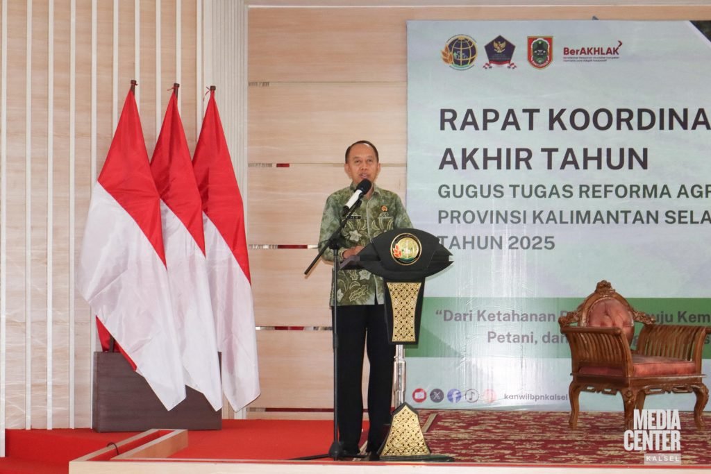 Hal itu disampaikan Gubernur Kalimantan Selatan H. Muhidin melalui Asisten II Bidang Perekonomian dan Pembangunan Setda Provinsi Kalsel, Ariadi Noor, saat menghadiri Rapat Koordinasi Akhir Tahun Gugus Tugas Reforma Agraria Provinsi Kalsel yang berlangsung di Kantor Wilayah Badan Pertanahan Nasional (BPN) Provinsi Kalimantan Selatan, Kamis (18/9/2025).