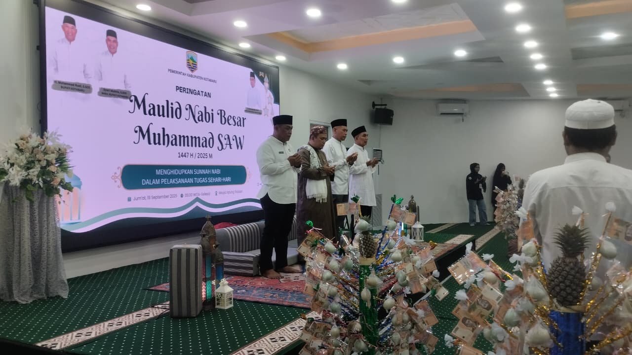 Pemerintah Kabupaten (Pemkab) Kotabaru menggelar peringatan Maulid Nabi Muhammad SAW 1447 Hijriyah di Masjid Apung Kotabaru, Jumat (19/9/2025). Kegiatan ini mengusung tema “Menghidupkan Sunnah Nabi dalam Melaksanakan Tugas Sehari-hari” dan berlangsung khidmat dengan pembacaan shalawat serta tausiah.