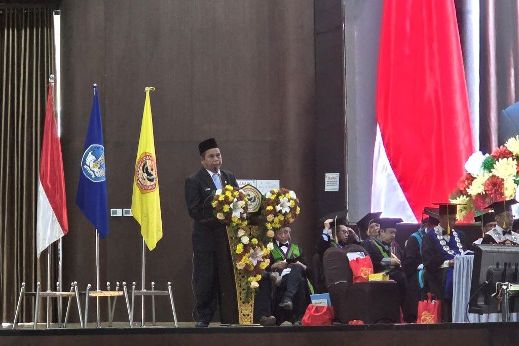Gubernur Kalimantan Selatan, Muhidin melalui Asisten Administrasi Umum, Dinansyah, menyampaikan apresiasi kepada Universitas Lambung Mangkurat (ULM) yang genap berusia 67 tahun pada acara Dies Natalis di Auditorium ULM Banjarbaru, Senin (22/9/2025).