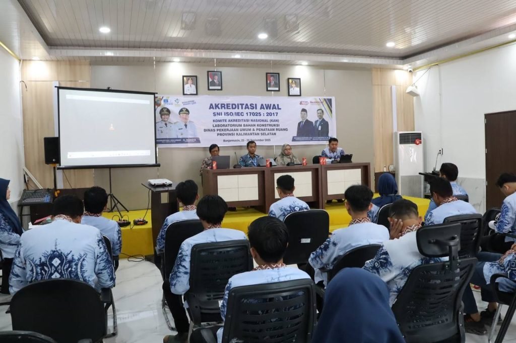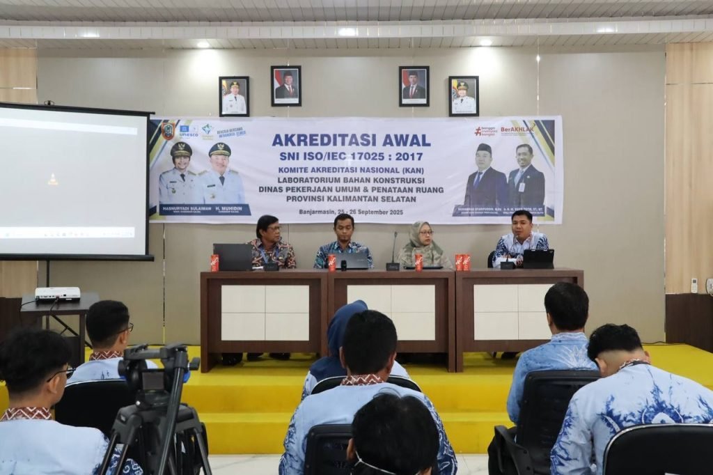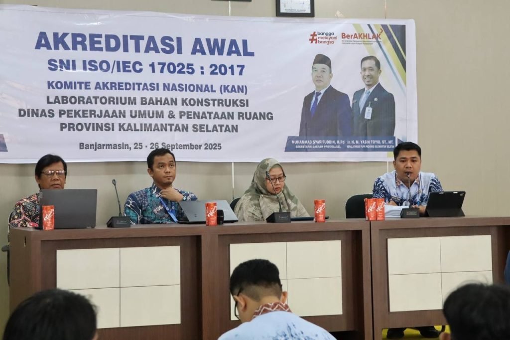 Laboratorium Bahan Konstruksi Dinas Pekerjaan Umum dan Penataan Ruang (PUPR) Provinsi Kalimantan Selatan menjalani Akreditasi Awal SNI ISO/IEC 17025:2017, sebagai bagian dari upaya peningkatan mutu layanan pengujian konstruksi agar diakui secara nasional maupun internasional.