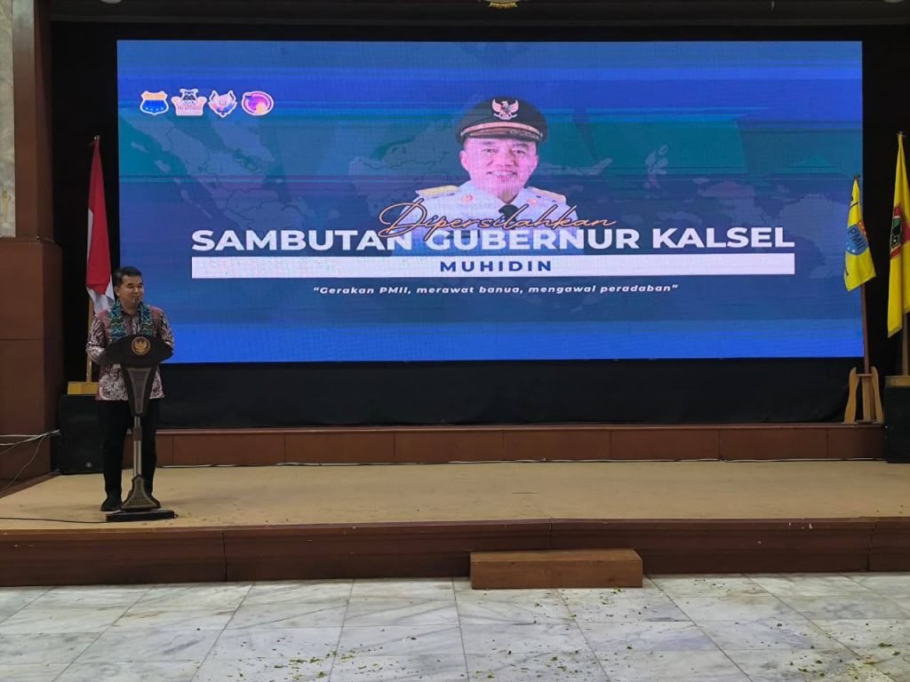 Staf Ahli Gubernur Kalimantan Selatan Bidang Ekonomi dan Pembangunan, Miftahul Chair, mewakili Gubernur Kalsel, H. Muhidin, menghadiri pelantikan pengurus Koordinator Cabang Pergerakan Mahasiswa Islam Indonesia (PMII) Kalimantan Selatan di Gedung Mahligai Pancasila Banjarmasin, Sabtu (27/9/2025) malam.