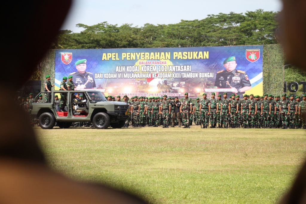 Pangdam VI/Mulawarman Pimpin Apel Alih Kodal Korem 101/Antasari ke Kodam XXII/Tambun Bungai