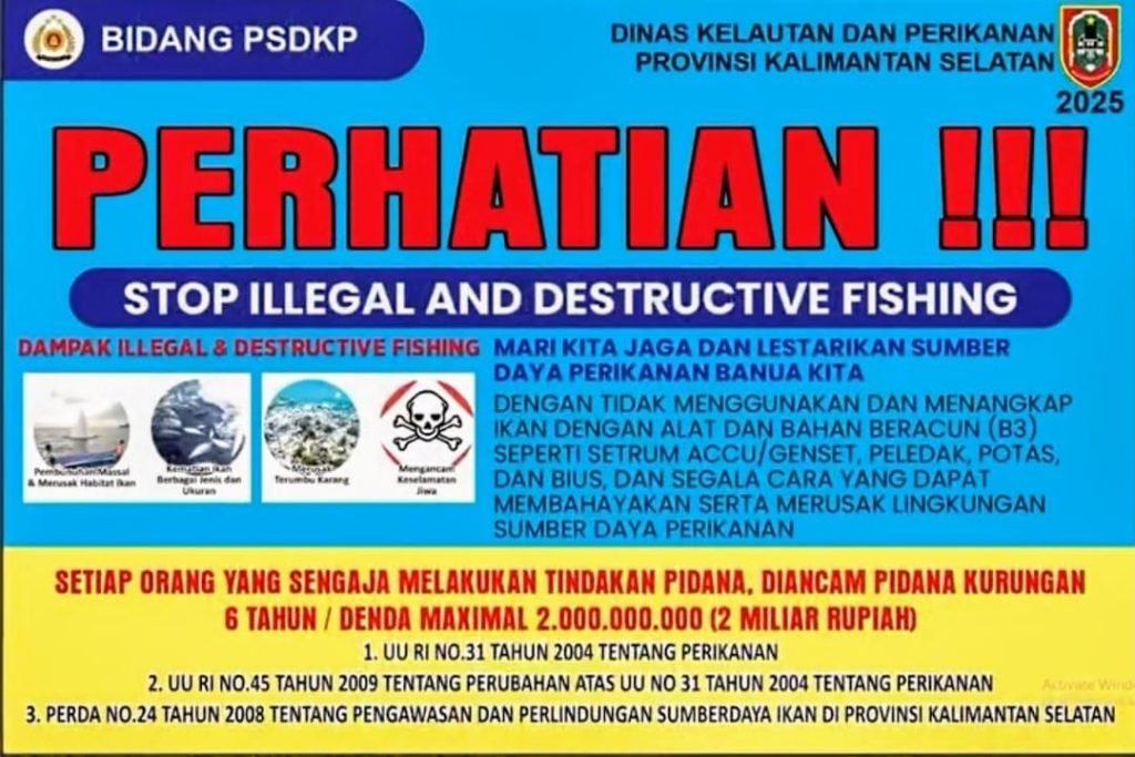Pemerintah Provinsi Kalimantan Selatan melalui Dinas Kelautan dan Perikanan (DKP) terus memperkuat sinergi dengan masyarakat pesisir dalam menjaga kelestarian sumber daya kelautan dan perikanan. Salah satu langkah nyata dilakukan melalui pemasangan empat papan seruan bagi Kelompok Masyarakat Pengawas (Pokmaswas) di wilayah Banjarmasin, Rabu (8/10/2025).