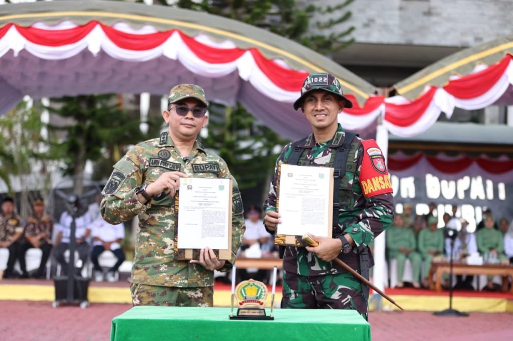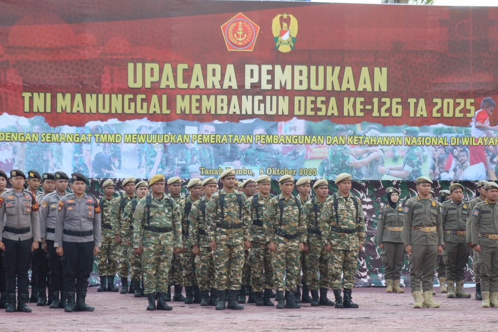 BATULICIN – Bupati Andi Rudi Latif bertindak sebagai Inspektur pada Upacara Pembukaan TNI Manunggal Membangun Desa (TMMD) ke-126 Tahun Anggaran 2025 di Kabupaten Tanah Bumbu. Upacara berlangsung di Halaman Kantor Bupati Tanah Bumbu, Batulicin, Rabu (8/10/2025). Mengusung tema “Semangat TMMD Mewujudkan Pemerataan dan Ketahanan Nasional di Wilayah”.