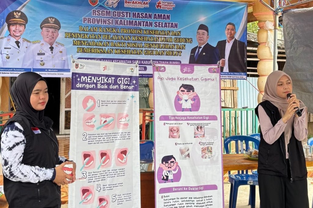 Dalam rangka promosi kesehatan dan peningkatan pelayanan kesehatan luar gedung, Rumah Sakit Gigi dan Mulut (RSGM) Gusti Hasan Aman Kalimantan Selatan melaksanakan bakti sosial berupa penyuluhan dan pemeriksaan kesehatan gigi dan mulut bagi masyarakat Desa Sungai Danau, Kecamatan Satui, Kabupaten Tanah Bumbu, pada Jumat (10/10/2025).