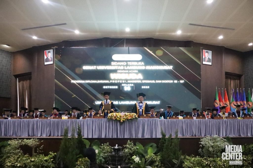 “Saya mewakili seluruh civitas akademika Universitas Lambung Mangkurat mengucapkan selamat kepada wisudawan dan wisudawati serta para orang tua yang pada hari ini telah berhasil melewati satu tahap penting dalam perjalanan pendidikan,” ujar