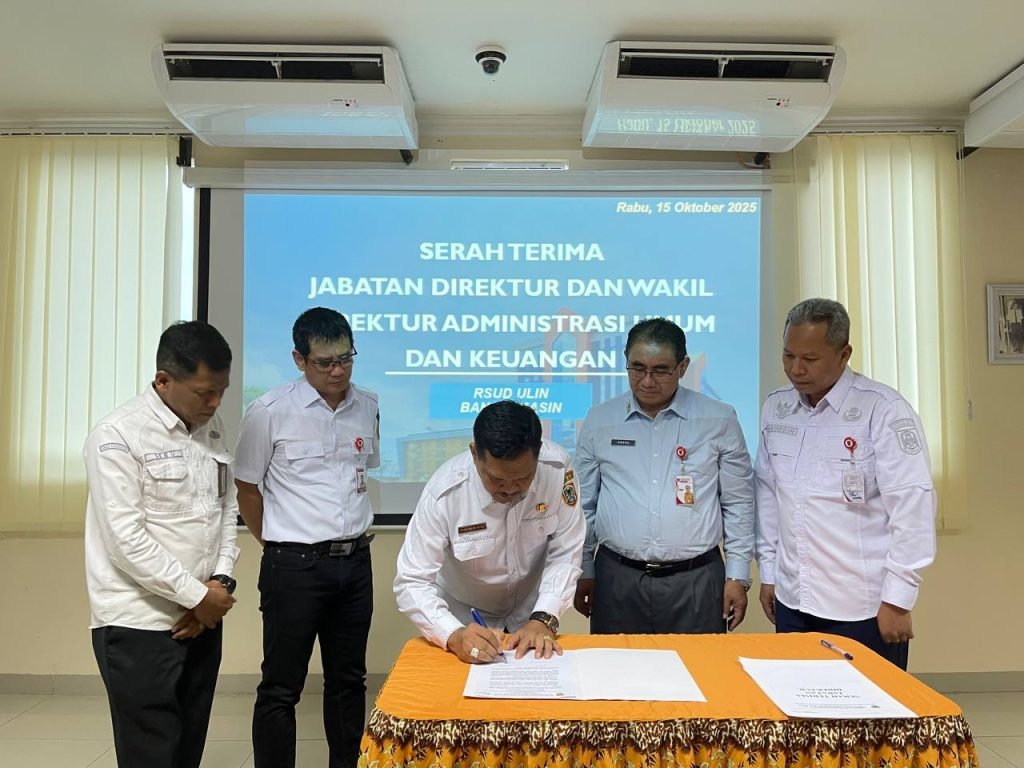 Rumah Sakit Umum Daerah (RSUD) Ulin Banjarmasin melaksanakan Serah Terima Jabatan (Sertijab) Direktur dari pejabat lama Dr. Diauddin kepada pejabat baru Dr. Among Wibowo, yang sebelumnya menjabat sebagai Direktur RSUD Moch. Ansari Saleh Banjarmasin.