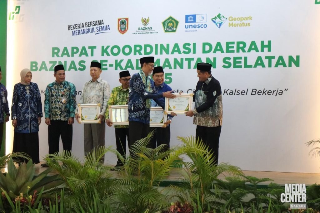 Rakorda BAZNAS se-Kalimantan Selatan berlangsung selama tiga hari, 15–17 Oktober 2025, dan turut diisi dengan penyerahan Anugerah BAZNAS Kinerja Tahun 2024–2025 serta simbolis penyaluran ZIS dan program pemberdayaan umat. MC Kalsel/dam