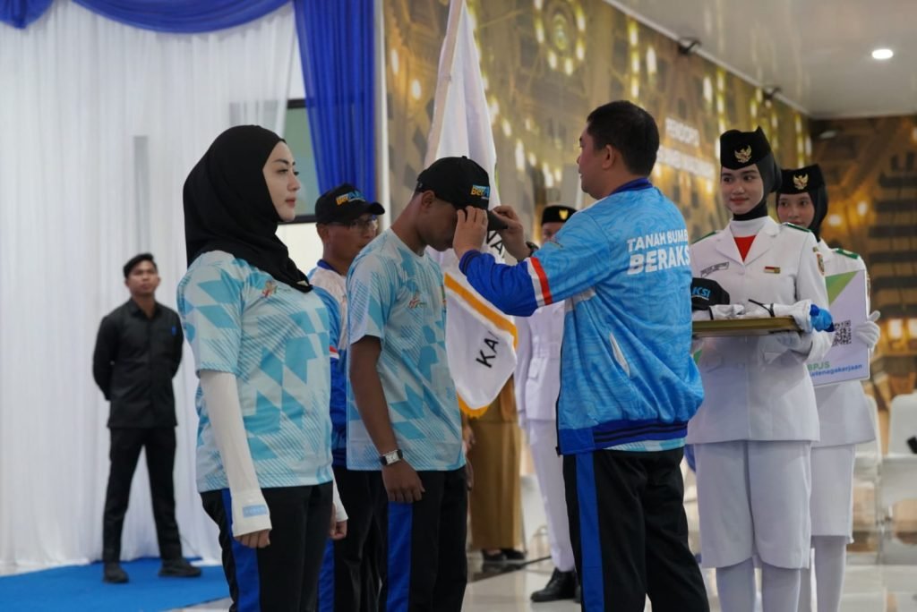 Prosesi pelepasan berlangsung penuh semangat yang digelar di Pendopo Kantor Bupati Tanah Bumbu di Batulicin, Senin (20/10/2025).