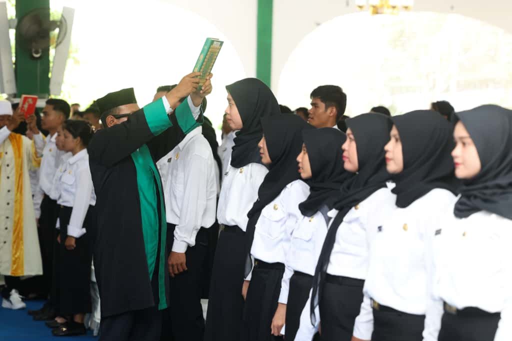Acara ini ditutup dengan penyerahan simbolis SK oleh Bupati, disambut antusias para peserta yang siap mengabdi untuk Tanah Bumbu. (upi)