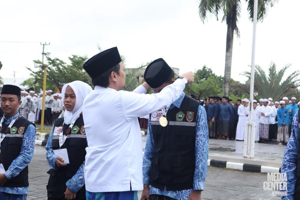 Dalam kesempatan tersebut, Wakil Gubernur juga menyerahkan piala dan medali penghargaan kepada para santri dan santriwati yang berprestasi di ajang internasional sebagai bentuk apresiasi atas dedikasi dan kerja keras mereka.