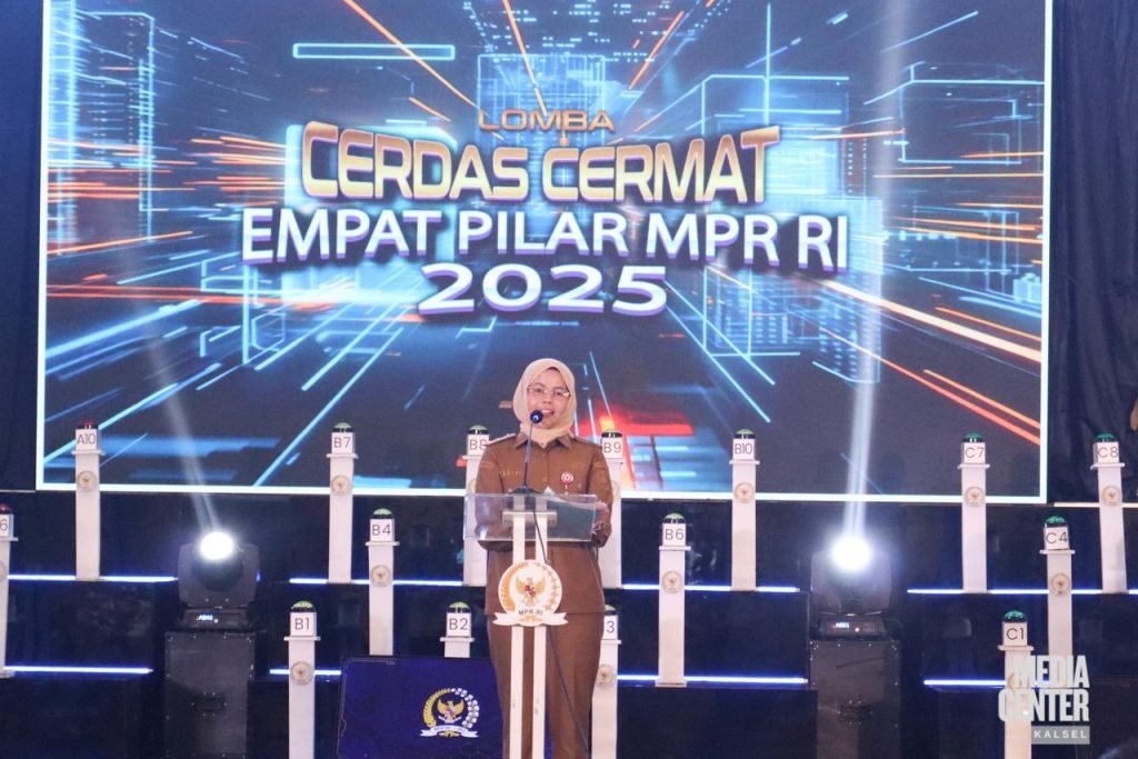 Gubernur Kalimantan Selatan, H. Muhidin, melalui Kepala Dinas Pendidikan dan Kebudayaan Provinsi Kalimantan Selatan, Galuh Tantri Narindra, menghadiri Lomba Cerdas Cermat Empat Pilar MPR RI Tahun 2025 Tingkat SMA/Sederajat Provinsi Kalimantan Selatan yang digelar di Banjarbaru, Senin (27/10/2025).
