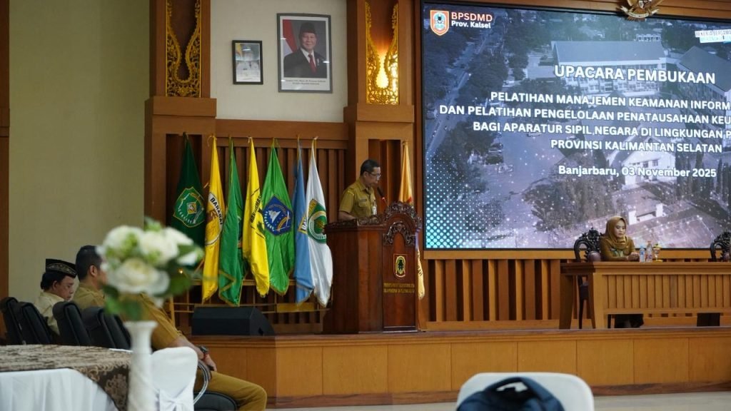 Pemerintah Provinsi Kalimantan Selatan melalui Badan Pengembangan Sumber Daya Manusia Daerah (BPSDMD) Provinsi Kalsel resmi membuka Pelatihan Pengelolaan Penatausahaan Keuangan dan Aset yang dilaksanakan di Aula I BPSDMD Provinsi Kalsel, Banjarbaru, Senin (3/11/2025).