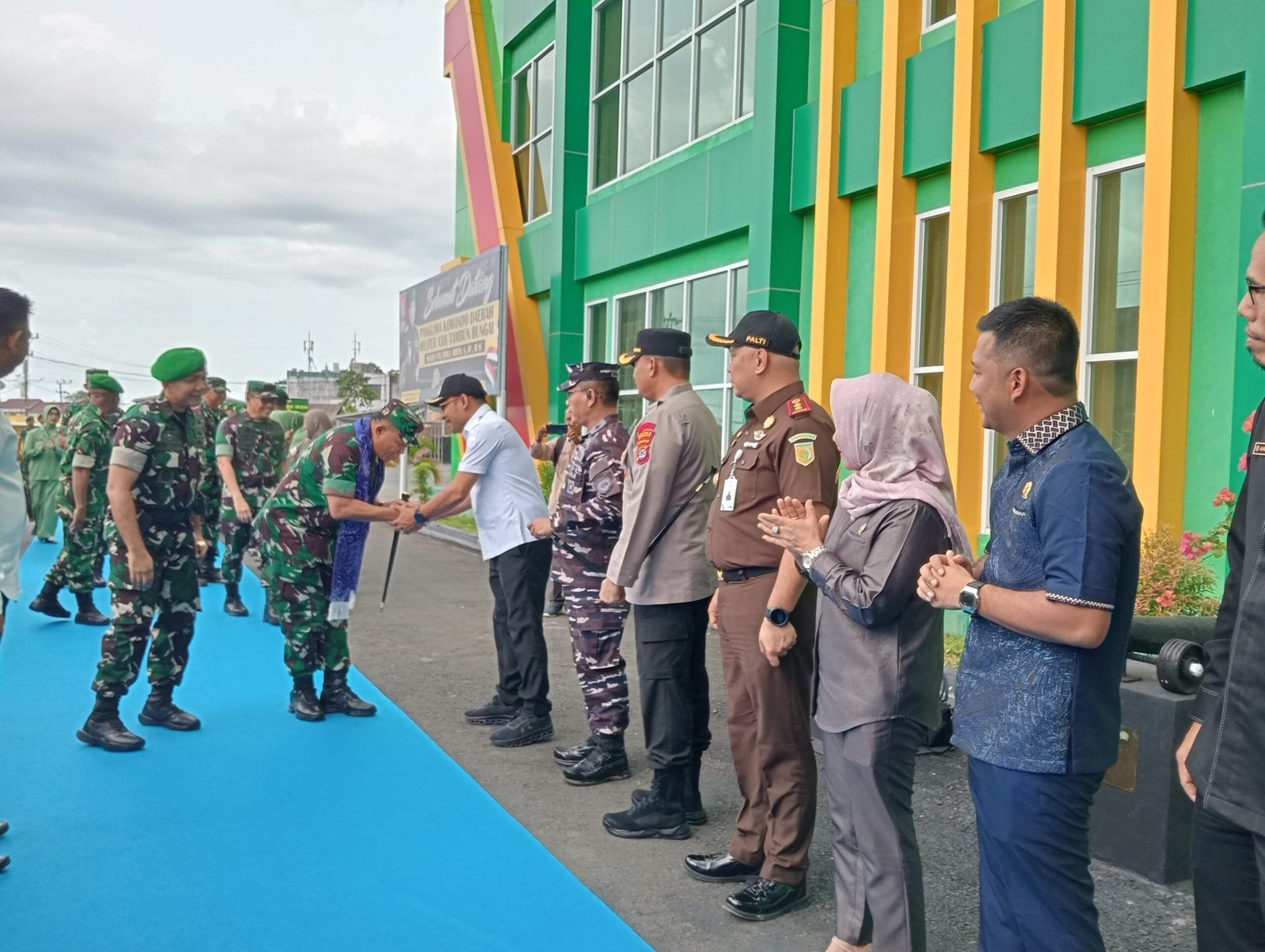 Kehadiran Pangdam XXII/Tambun Bungai disambut hangat oleh jajaran Forkopimda Kotabaru, antara lain Wakil Bupati Kotabaru Syairi Mukhlis, S.Sos., yang hadir mewakili Bupati Kotabaru H. M. Rusli, S.Sos., Ketua DPRD Kotabaru Suwanti, Kapolres Kotabaru AKBP Doli M. Tanjung, S.I.K., serta Danlanal Kotabaru Letkol Laut (P) M. Harun Al Rasyid, S.T., M.Tr. Opsla.