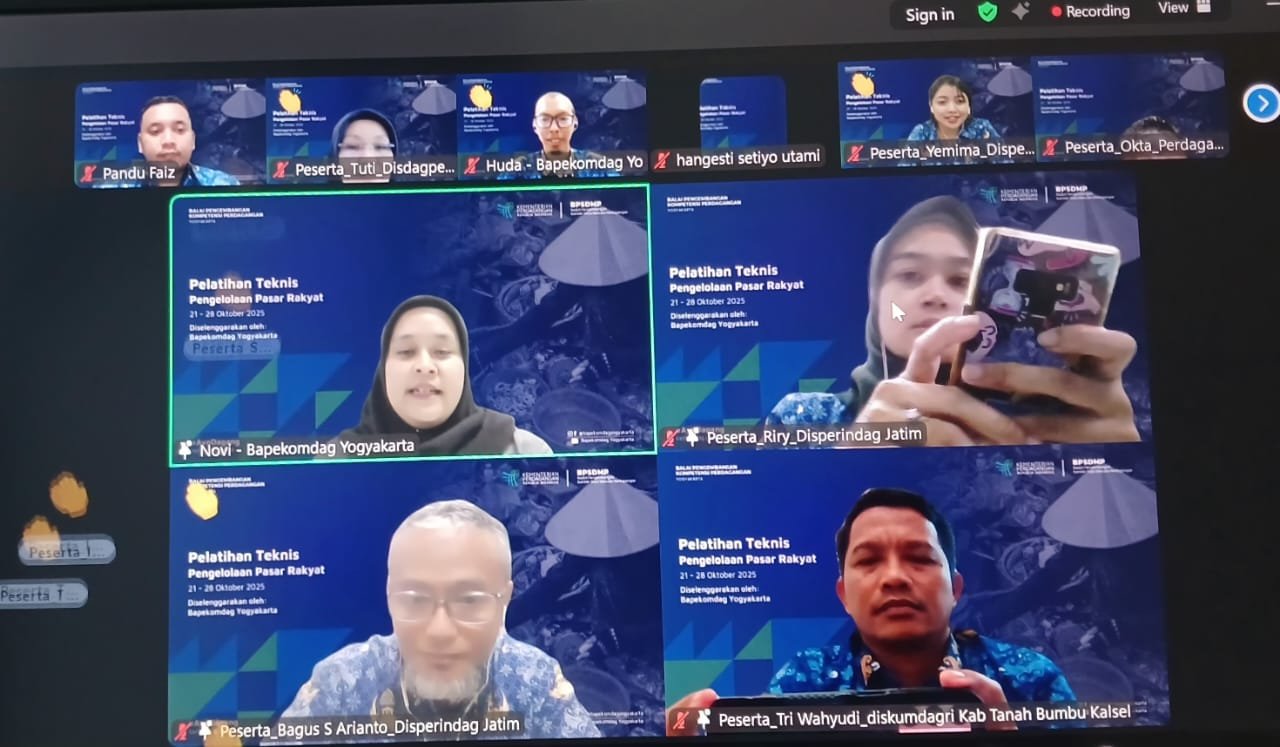 Pelatihan yang digelar secara online learning ini berlangsung dari 21 hingga 28 Oktober 2025, dengan total 41 jam pelajaran intensif. Kegiatan tersebut diikuti oleh peserta dari berbagai provinsi di Indonesia, baik dari wilayah perkotaan maupun daerah, dengan tujuan meningkatkan kompetensi aparatur dalam tata kelola pasar rakyat yang modern, tertib, dan berdaya saing.